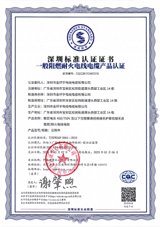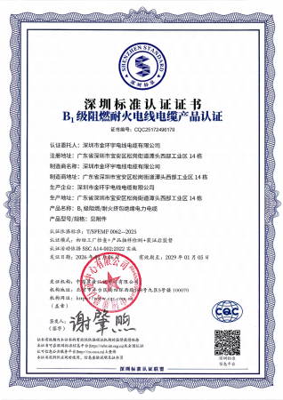 近期,金环宇电缆生产B1级阻燃/耐火挤包绝缘电力电缆,聚氯乙烯绝缘无护套电线电缆,聚氯乙烯绝缘聚氯乙烯护套电缆,额定电压450/750V及以下交联聚烯烃绝缘无护套低烟无卤阻燃/耐火电线电缆产品获得深圳标准认证,以质量过关、技术过硬的实力打造高品质产品,为消费者打造安全可靠的消费环境。