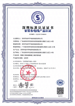 “深圳标准认证”是产品质量检测的官方名片,也为消费者提供品牌质量可信任的鉴定符号。未来,金环宇电缆将继续以高标准为指引,积极吸纳前沿技术及创新理念,为用户提供高品质产品,为行业树立质量标杆,助力行业高质量发展。